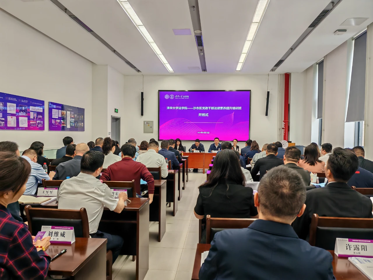 向各位参训学员表示诚挚欢迎,并介绍了举办此次培训班的初心、愿景及重要意义。他还介绍了清华大学近期的校庆活动,鼓励学员们在学习之余踊跃参加校园活动和讲座,充分感受校园生活。他表示,期待学员们在未来为期五天的学习交流中激发智慧、开拓思维、提升能力,为法治中国、法治沙市建设贡献力量。