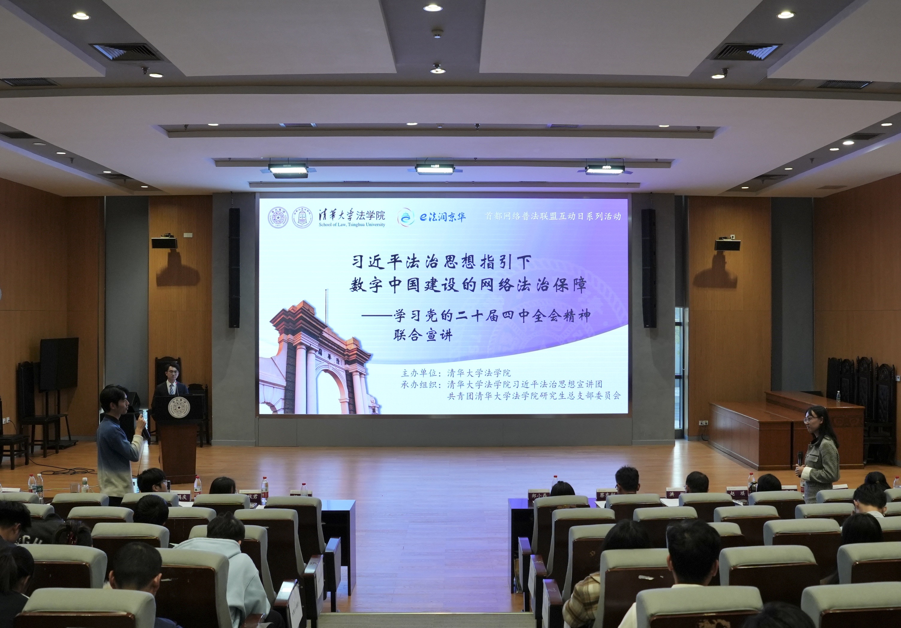 研究生总支部委员会共同承办的“习近平法治思想指引下数字中国建设的网络法治保障”——学习党的二十届四中全会精神联合宣讲活动在法律图书馆模拟法庭成功举行。